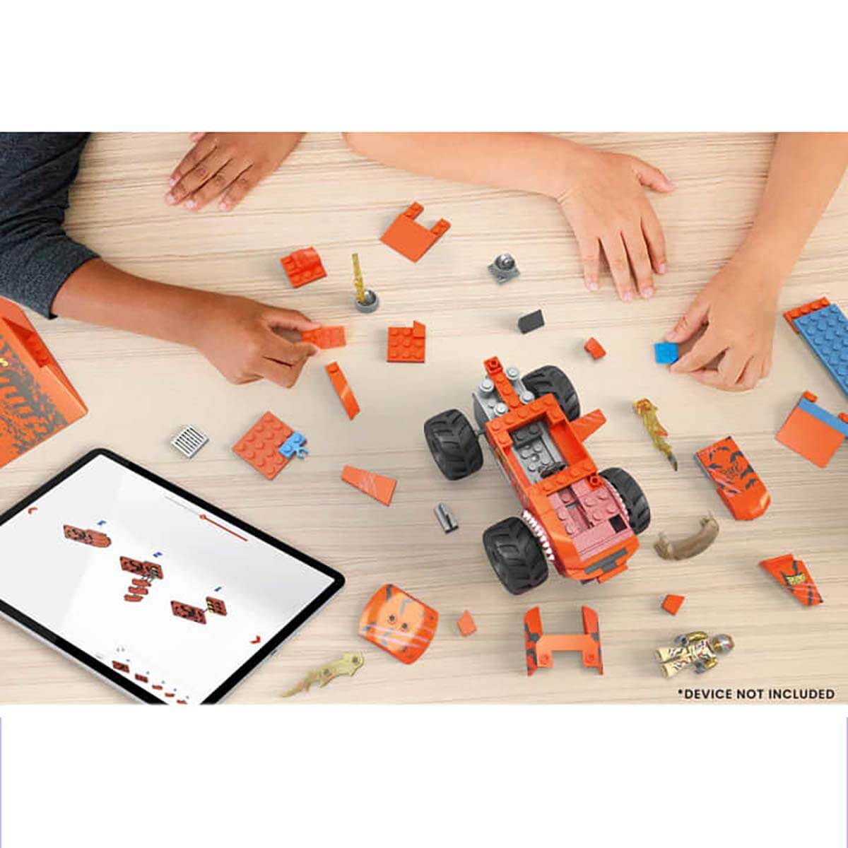 Ce coffret va offrir une expérience de jeu complète et immersive aux enfants. En effet, tout d'abord, ils vont devoir construire eux-mêmes le Monster Truck orange inclus dans le coffret. Avec sa peinture orange à rayures tigrées et son aileron de requin, ce Monster Truck va provoquer d'incroyables carambolages !