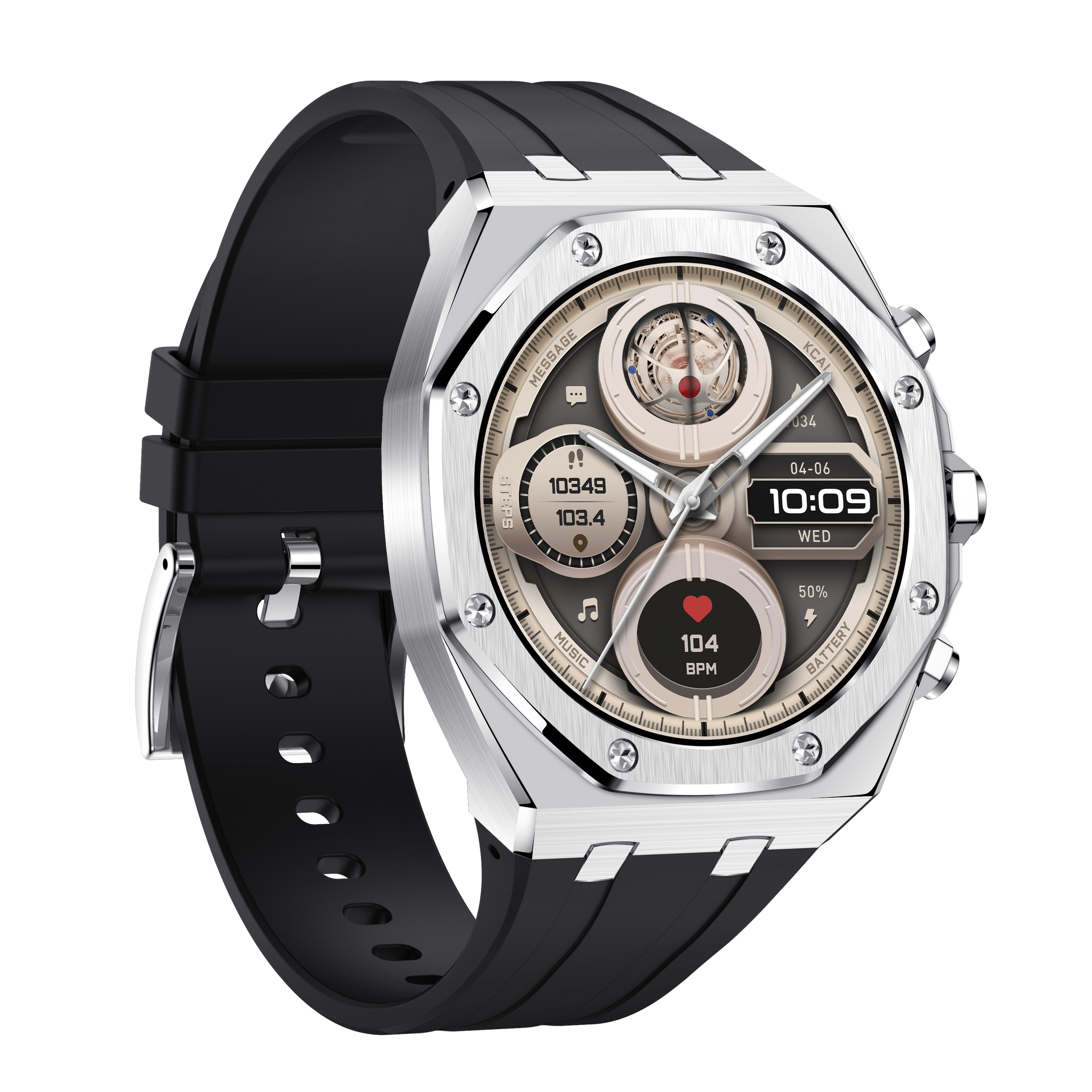 Montre connectée AMOLED NASA édition Arizona .écran couleur haute définition (avec bracelet silicone) couleur cadran ARGENT